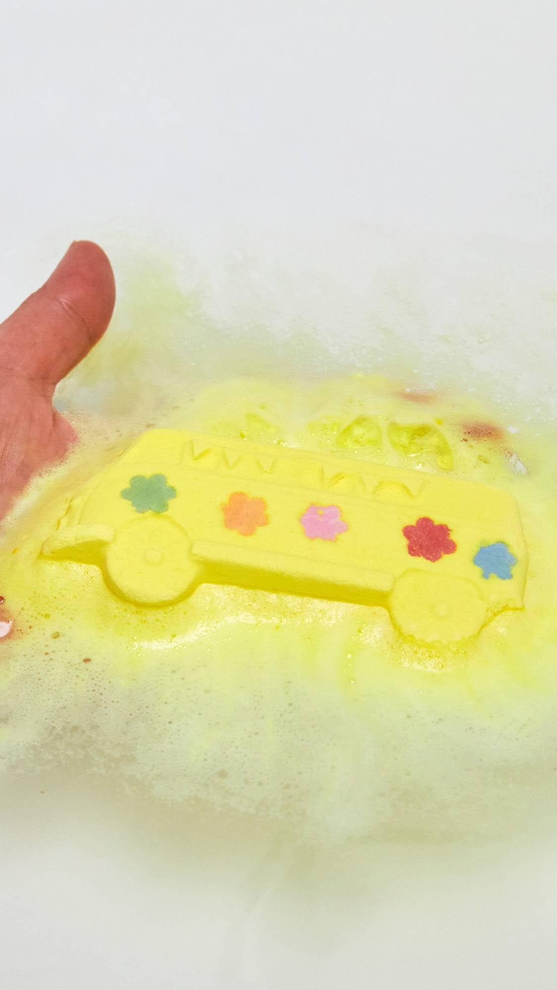 When the world’s getting you down, hop in the tub with our Magic Bus and feel the flower power! We’re sure you’ll dig the piña colada-inspired party scent, while the hippie palette creates a far-out explosion of color in the water. Inside the bus, lemongrass oil tones your skin while vitamin E-rich argan oil leaves you feeling soft and smooth. Coriander seed oil is mixed in too, which can help your body feel soothed and warm.